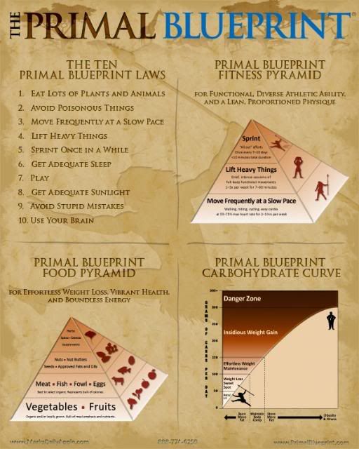 The Primal Blueprint is a lifestyle whose tenets are informed by biological evolution, traditional wisdom, and modern science to form a healthy, sustainable, enjoyable way of being. Its a way to eat, move, sleep, and simply exist with our ancient genes in this modern world taking advantage of modern science and drawing upon lessons of our evolutionary background.
